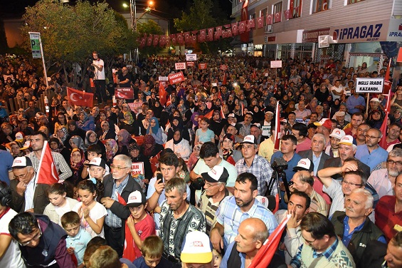 Hangi siyasi görüşten olursak olalım unutmayalım bu Ülke bizim, Ülkemize Bayrağımıza Milletimize sahip çıkmak hepimizin en kutsal görevidir. Allah Ülkemizi Milletimizi tüm İslam alemini korusun. Cumhurbaşkanımız Başbakanımız ve ilk günden bu yana Devletinin yanında yer alan siyasi parti Başkanlarımıza, hayatları pahasına dik duruş sergileyen Milletvekillerimiz ve halkımıza teşekkürü bir borç biliriz. Sivil Toplum Kuruluşları olarak demokrasi nöbetlerine devam ediyoruz. Dursunbey, Cumhurbaşkanımızın ikinci bir emrine kadar tüm Türkiye’de olduğu gibi Demokrasi nöbetlerine devam edecektir.