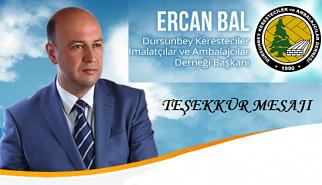 AK Parti Belediye Başkan Aday Adayı Ercan BAL, Partisinin Dursunbey Belediye Başkan adayının belirlenmesinin ardından aday adaylığı sürecinde kendisini destekleyen herkese teşekkür etti ve Başkan adayı Ramazan BAHÇAVAN'a hayırlı olsun dileğinde bulundu.